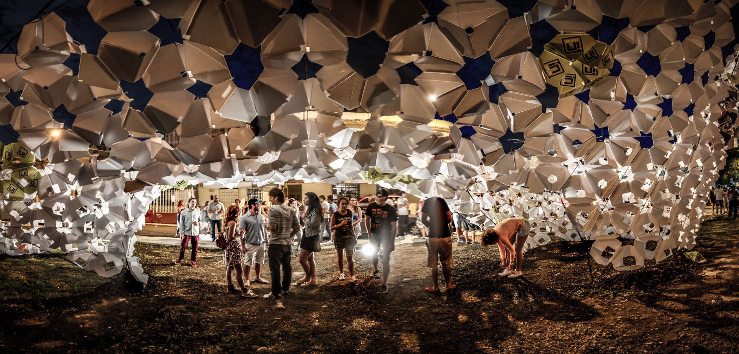 This pavilion was the product of a month-long workshop I co-taught on parametric tools and detailed fabrication at the University of Puerto Rico. The project consisted of a thousand recycled-plastic modules threaded over a structural system of high-tensioned ropes. Located on the corner of Cerra and Aurora Street in Santurce, Puerto Rico, the installation became a central feature of 2014